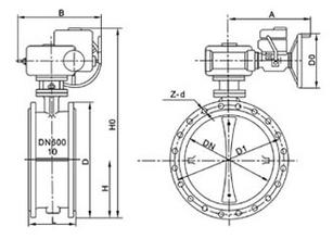 电动法兰软密封蝶阀 外形尺寸