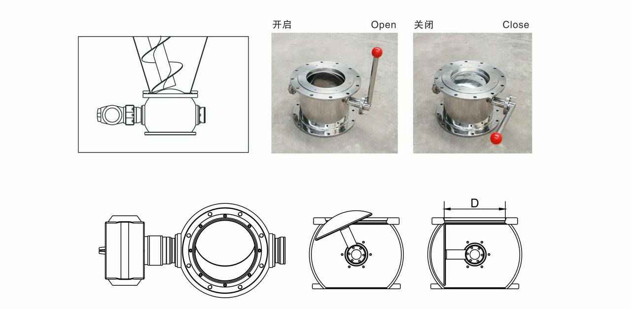 高温出料阀可替代梅花阀、蝶阀、翻板阀安装于双螺旋锥形混合机底部,